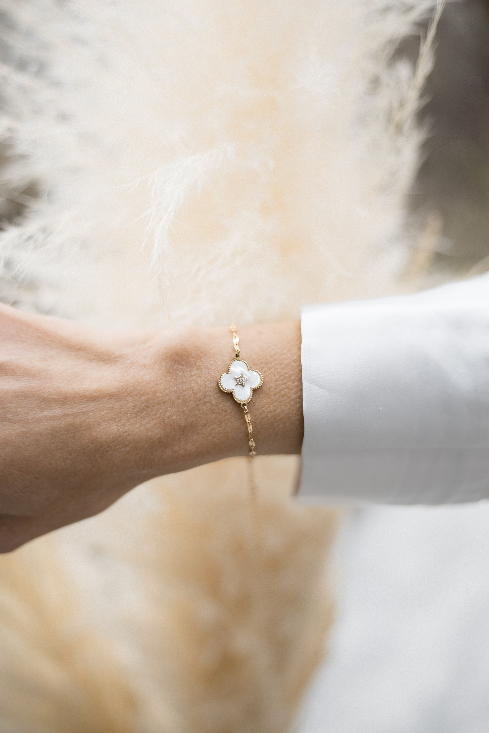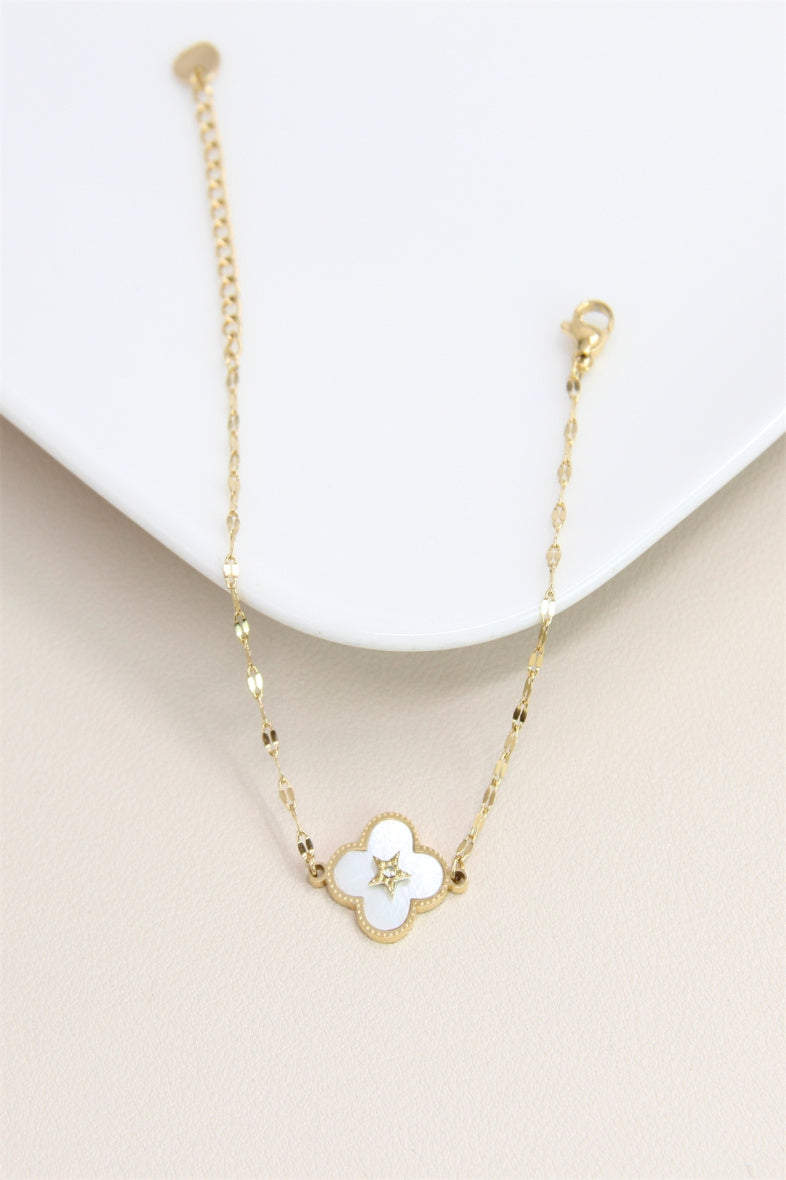 Le bracelet CHIARA en acier inoxydable est l’alliance parfaite entre élégance et résilience. Orné d’un délicat trèfle porte-bonheur, il apporte une touche de sophistication tout en symbolisant la chance. Son design épuré et durable en fait un accessoire incontournable pour sublimer votre style au quotidien.
